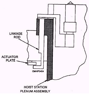 Fin Opener Assembly The Mk 26 GMLS fin opener assembly (fig. 7-24) is mounted to the magazine deck at the hoist station. It is somewhat physically comparable to other fin opener arm assemblies. During a load cycle, the entire assembly shifts laterally between two positions, AAW or ASW, if required. This action aligns the fin cranks to the fins on the different diameter missiles. Once in proper position, the assembly then raises to engage the missile, unfolds the fins (of AAW and ASW rounds), and then lowers. During an unload cycle of an ASW missile, the fin opener assembly raises, unlocks, and refolds the ASW fins. The fins of AAW missiles cannot be automatically refolded. System personnel must enter the magazine and manually close them. Associated with the fin opener assembly is an AAW identification probe (fig. 7-25). It is located within the inlet of the plenum assembly at the hoist station. The probe is used to identify AAW missile groups before they are hoisted. When the tin opener assembly shifts to the AAW position, an actuator plate on the left-hand opener engages a linkage rod attached to the probe. As the assembly raises (or lowers), the probe also raises (or lowers) to engage (or exit) the aft receptacle of the missile. Magazine Hydraulic Systems Within each RSR's six-missile section and hoist end section are the components that produce the necessary hydraulic forces to operate the system during normal