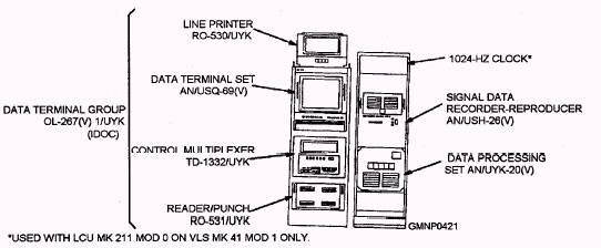 Figure 7-42.-Launcher Control Unit Mk 211 Mod 0. individual cells of a vertical launcher. The Mk 41 Mod 0 VLS on CG-47 and -52 and up class ships has both a forward and aft launcher with 61 cells in each. The Mk 41 Mod 1 VLS on DD-963 class ships has a single, forward 61-cell launcher. The Mk 41 Mod 2 VLS on DDG-51 class ships has an aft launcher with 61 cells and a forward launcher with 29 cells. |
