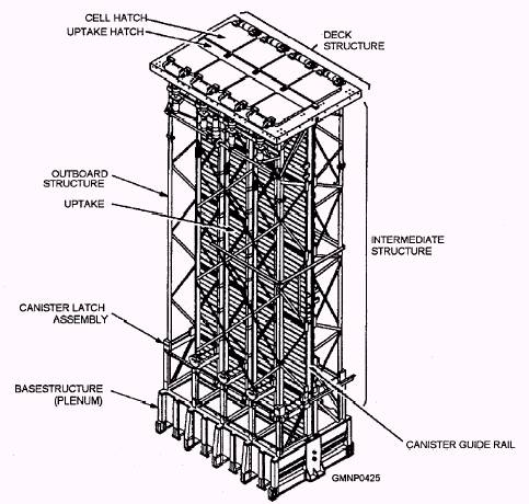 5-CELL STRIKEDOWN MODULE The 5-Cell Strikedown Module Mk 3 Mod 0 (fig. 7-47) consists of the deck structure, the intermediate structure, the base structure, and the strikedown