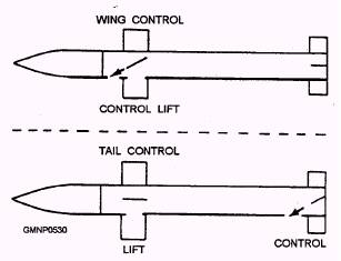 Figure 9-3.-Missile airframe design with respect to control surface location.