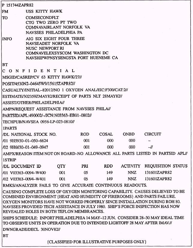 Figure 13-5.-Example of an INITIAL CASREP message.
