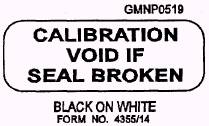 CALIBRATION VOID IF SEAL BROKEN.- The CALIBRATION VOID IF SEAL BROKEN label (fig. 13-20, black letters with a white background) is placed over readily accessible (usually exterior) adjustments to prevent tampering by the user when such tampering could affect the calibration. The label should not be used to cover adjustments or controls that are part of the normal use or operation of the instrument. This label may also be used to prevent removal and/or interchange of plug-ins, modules, and subassemblies when such removal or interchange will affect the calibration.