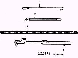 Figure 3-31.-Component parts of the operating rod and connector group. Lift the operating rod free and pull to the rear, disengaging it from the operating rod guide. To remove the bolt after removal of the operating rod, grasp the bolt roller that engages with the operating rod and slide it forward. Lift upward and outward to the right with a slight rotating motion and remove the bolt from the receiver. The weapon is now field-stripped for cleaning. Reassembly of this weapon is basically the reverse of disassembly. A step-by-step procedure for reassembly and other maintenance procedures is covered in the U.S. Army FM 23-8. |