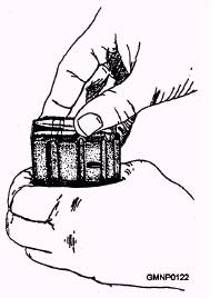 Figure 3-49.-Luading cartridges into the magazine with the magazine loading strip and charger. If you load the rifle with the bolt closed, you chamber the top round by pulling the charging handle fully to the rear and releasing it. NOTE Do not "ride" the charging handle forward with the right hand. If the handle is eased forward from the OPEN position, the bolt may fail to lock. If the bolt fails to go forward fully, strike the forward assist assembly with the heel of the right hand. Unloading the Rifle To unload the rifle and make it safe, place the selector lever on SAFE, press the magazine catch button and remove the magazine, pull the charging handle to the rear, inspect the chamber to make sure it is clear, lock the bolt carrier to the rear by depressing the lower portion of the bolt catch, and return the charging handle forward. Remember, the rifle is clear (and therefore safe) only when no round is in the chamber, the magazine is out, the bolt carrier is to the rear, and the selector lever is on the SAFE setting. A clean, properly lubricated and maintained M16Al rifle will function properly and fire accurately when needed. To keep the rifle in good operating condition, you must take care of it properly and maintenance must be performed according to set procedures. Procedures for the care and cleaning of the rifle can be found on the 3-M Systems MRCs or in the Army's TM 9-1005-249-10. Maintenance of the M16A1 rifle is generally the same as for other small arms previously discussed. The bore and chamber must be kept free of residue and foreign matter. Inspect, while cleaning and lubricating, all sliding or working surfaces for burrs, cracks, or worn areas (repair or replace as necessary) and lubricate with a thin film of lubricant. Remove dirt, rust, grit, gummed oil, and water as these will cause rapid deterioration of the inner mechanism and outer surfaces.