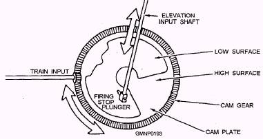 CHAPTER 4 BASIC MECHANISMS The purpose of this chapter is to explain some of the fundamentals of mechaniccs and hydraulics to help you better understand the ordnance equipment that you will be working within the fleet. We will also introduce you to the air and power supplies that are used by a shipboard GMLS and gun system. The control mechanisms of GMLS and gun systems involve a combination of mechanical, hydraulic, electrical, and electronic devices. By studying this chapter and the chapter that follows (on electricity and electronics), you should become familiar with most of the principles of how these devices operate. Understanding how these devices operate is the first step in becoming a good technician. Pay particular attention to the References listed throughout the text, which describe sources of more detailed information on each topic. These textbooks are included on the bibliography list for GM3 through GMC (from which advancement examination questions are referenced). MECHANICAL DEVICES LEARNING OBJECTIVE: Discuss the operating principles of the mechanical devices used in ordnance equipment. The movement and functioning of major systems (directors, launchers, and gun mounts) are accomplished, in part, using one or more basic mechanical devices. Our discussion centers on the functioning principles and applications of cams, gear trains, levers and linkages, couplings, and bearings. CAMS A cam is an irregularly shaped device used to transmit motion through a follower. The cam surface contours are determined by the needs of the device the cam serves. The follower may be used to operate any number of other mechanisms. In figure 4-1, we show a face cam being used in a cutout device for a gun firing circuit. The cam face is contoured to correspond to the ship's firing and nonfiring zones. Each position on the cam plate corresponds to a specific position of gun train and elevation. The low area corresponds to the positions in which the gun may be safely fired; the raised area corresponds to the areas where firing would endanger permanent ship's structure. The cam is geared to the train drive to rotate as the gun moves in train. The follower is linked to move across the face of the cam as the gun is moved in elevation. The follower is linked to a switch in the firing circuit that opens when the follower is raised by the high portions of the cam. The face cam is one of many different styles. There are also barrel cams and edge cams. The barrel cam is similar to the face cam but is cylindrical in shape with the cam surface on the inside or outside. Both face and barrel cams are used in firing cutout mechanisms.