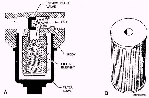 Figure 4-17.-A. A full-flow filtering device; B. A micronic filter element.