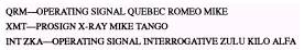 USE OF OPERATING SIGNALS Operating signals are not designed for R/T transmission. In R/T procedures, operating information is normally conveyed in concise phrases. However, in two circumstances it is permissible to use operating signals contained in Communication Instructions, Operating Signals, ACP 131, instead of standard R/T phrases. These circumstances are where there are language difficulties and where practical if there is no risk of confusion. In such instances, operating signals must be preceded by the word "PROSIGN" or "OPERATING SIGNAL." Prosigns and operating signals are transmitted using only authorized phonetic equivalents. The prosign INT is transmitted in its prosign equivalent; that is, INTERROGATIVE. The prowords I SPELL and FIGURES are not used. Examples of prosigns and operating signals are: