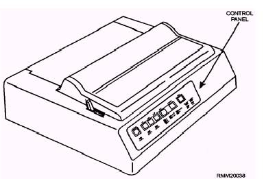 Figure 1-23.\Dot matrix printer showing operating control panel. features quickly and easily. The printer we are using as our example is a dot matrix printer (shown in figure 1-23). Dot matrix printers are widely used with microcomputers in the workspaces. You will become very familiar with their operation. PRINTER OPERATING CONTROL PANEL.\ The operating control panel shown in figure 1-24 displays the buttons that control various functions along with several indicator and warning lights that show you what functions are currently in operation. Listed below are some of the more common CONTROL BUTTONS and INDICATOR/WARNING LIGHTS you are likely to see and use on this type of printer. Control Buttons. \You can set up various functions and control printing functions by manually pushing control buttons. To activate the buttons, you must first put the printer in an offline status. Normally, this is done by depressing the online button. |