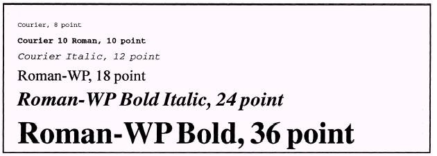 The features of desktop publishing can be categorized as composition, layout, and graphics. Let's take a look at each area. Desktop Publishing Composition Composition includes defining the sizes and styles of type to be used, the amount of space to allow between horizontal letters and vertical lines, and coding the text (copy) to meet these standards and definitions. You can enter and edit text directly or you can input text created using a word processing program. Documents created in word processing programs can be imported into the DTP software. Once they are imported, you can manipulate the text (copy) any way you want to satisfy your particular publication needs. The following are features and terms you need to become familiar with: l Type styles and sizes\ Type is classified according to its style of letter and size. You can choose a variety of type styles (typefaces) and sizes to create impressive forms, letterheads, brochures, flyers, and so on. Examples of Courier and Roman-WP are shown in Table 3-1. Notice each is in a different size. Printers' measurements are based on the point system. The point is approximately 1/72 of an inch. When you hear someone say 8-point type, that simply means that the body of the type measures 1/9 of an inch from top to bottom; 12-point type measures 1/16 of an inch, and so on. The typeface itself is seldom as large as the body, because a small shoulder or ledge is left below the letter on most type. Type sizes range from 3-to 120-point. You will also see the term font used in connection with desktop publishing and word processing. A font is a collection of characters of unified design\the typeface and point size are needed to specify a font. However, the term font is often used interchangeably with typeface.