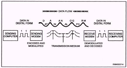 Figure 2-3.\Digital data as it is encoded, modulated, transmitted, demodulated, and decoded. |