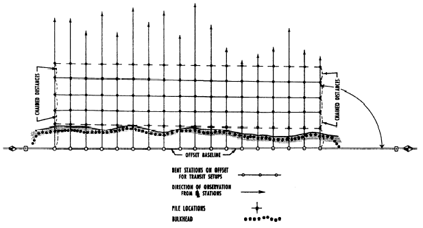 OFFSHORE LOCATION BY CHAINING Figure 10-28 shows a situation in which offshore locations of piles for a