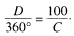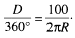 Figure 11-4.Degree of curve (arc definition). By studying figure 11-4, you can see that the ratio between the degree of curvature (D) and 360 is the same as the ratio between 100 feet of arc and the circumference (C) of a circle having the same radius. That may be expressed as follows: