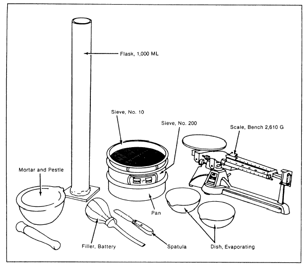 Figure 13-13.Apparatus for grain size distribution by hydrometer analysis. |