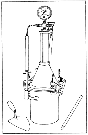 Figure 13-21.Apparatus for air-content test. familiar with the procedures of slump testing. If not, you should review the discussion of slump testing that is in the EA3 TRAMAN. |
