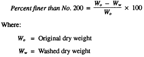 Test for Mineral Dust In bituminous paving, particles finer than the No. 200 sieve are referred to a mineral dust. To measure the amount of mineral dust in a selected sample, you perform a washed sieve analysis (discussed in the EA3 TRAMAN), using the No. 40 and No. 200 sieves. After all the material possible has passed the No. 200 sieve and has been discarded, the materials remaining on the sieve are returned to the original washed sample, oven-dried, and weighed The amount of mineral dust is then calculated, using the following formula: