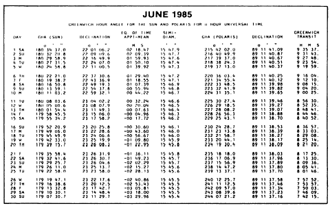 of the sun is tabulated for O hours universal time of each day (Greenwich date)