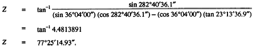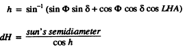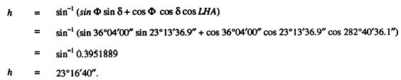 Note that LHA is between 180 and 360 and that Z is positive; therefore, the normalized correction equals 0. Solving for h,