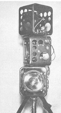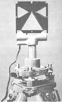 AND INSTRUMENT SUPPORTS All triangulation stations of third order or higher must be identified on the ground with a station marker, at least two reference markers, and, if necessary, an azimuth marker. These markers are usually embedded in or etched on a standard station monument. Station markers, monuments, and station referencing are discussed in the EA3 TRAMAN. For low-order surveys, unless otherwise required, the stations may be marked with 2-inch by 2-inch wooden hubs. A primary triangulation station is both a sighted secondary triangulation station is one that is sighted from primary stations but is not itself used as an instrument station. Only the primary stations are used to extend the system of figures.Each triangulation station must be marked in a way that will make it visible from other stations from which it is sighted. A mark of this kind is called a triangulation signal. For a secondary station, the signal may be relatively simple, such as a pole set in the ground or in a pile of rocks, or a pole set on the ground and held erect by guys. An object already in place, such as a flag pole, a church spire, or a telegraph pole, will serve the purpose. When the instrument itself must be elevated for visibility, a tower is used.Targets A target is generally considered to be a nonilluminating signal. Target requirements can be met by three general typestripods, bipeds, and polesall of which may incorporate variations. The targets are constructed of wood or metal framework with cloth covers.SIZE OF TARGET. For a target to be easily visible against both light and dark backgrounds, it should be constructed in alternating belts of red and white or red and yellow. For ready bisection, it should be as narrow as possible without sacrificing distinctness. A target that subtends an angle of 4 to 6 seconds of arc will fulfill this purpose. Since 1 second of arc equals 0.5 centimeters at a 1-kilometer distance, an angle of 6 seconds requires a target 3 centimeters wide at 1 kilometer or 30 centimeters at 10 kilometers. Under adverse lighting conditions, the target width will have to be increased. Flags of an appropriate size may be added to aid in finding the target. All cloth used on targets should be slashed after construction to minimize wind resistance.TRIPOD TARGET. The tripod target is the most satisfactory from the standpoint of stability, simplicity of construction, durability, and accuracy. It ranges from a simple hood of cloth, cut and sewn into a pyramid shape and slipped over the instrument tripod, to the permanent tripod with the legs embedded in concrete, sides braced, a vertical pole emplaced, and the upper part boarded up and painted. Temporary tripod targets may be constructed of 2-inch by 2-inch lumber, pipes, poles, or bamboo joined at one end by wire or bolts threaded through drilled holes. The tripod must be
