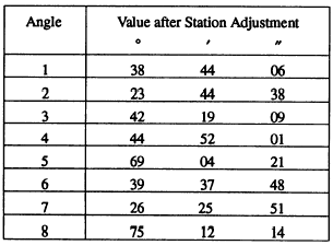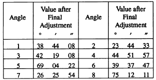 CHECKING FOR PRECISION Early in this chapter the fact was stated that the precision of a triangulation survey may be classified according to (1) the average triangle closure and (2) the discrepancy between the measured length of a base line and its length as computed through the system from an adjacent base line. Average Triangle Closure The check for average triangle closure is made after the station adjustment. Suppose that, for the quadrilateral shown in figure 15-28, the values of the as follows: