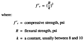 CHAPTER 17 MIX DESIGN: CONCRETE AND ASPHALT Chapter 7 of the EA3 TRAMAN discusses the properties that comprise a good quality concrete and introduces the use of concrete as a construction material. In Part 1, chapter 13, of this TRAMAN, you learned about the different types of portland cement, the methods used to identify cement, and the purpose and effect of various admixtures that are often used in the production of concrete. You also studied the physical requirements for water and aggregates used in concrete and the various tests used to determine the suitability of water and aggregates as ingredients in a concrete mixture. The discussion of concrete in this chapter is directed towards the design of concrete mixtures. This discussion presupposes that you are well versed in the previous topics. If you are not, then it is strongly recommended that you review the aforementioned chapters before you begin the study of this chapter. Also covered in this chapter is bituminous mixture design. Once again, it is strongly recommended that you first review chapter 13 of this TRAMAN to refresh your knowledge of bituminous pavement materials and the test-ing methods used in the control of bituminous mixtures.DESIGN OF CONCRETE MIXTURES From your previous studies, you know that the basic ingredients used in the production of concrete are cement (usually portland cement), water, and both fine and coarse aggregates. You also know that certain admixtures are used occasionally to meet special requirements. Design of a concrete mixture consists of determining the correct amount of each ingredient needed to produce a concrete that has the necessary consistency or workability in the freshly mixed condition and that has desired strength and durability characteristics in the hardened condition.Two methods of proportioning concrete mixtures are discussed in this chapter. One methodthe trial batch method is based on an estimated weight of concrete per unit volume. The other method, based on calculations of the absolute volume occupied by the ingredients used in the concrete mixture, is called the absolute volume method. Our discussion of these methods is only intended to provide you with a basic understanding of mixture design. For a thorough discussion, you should refer to the most recent edition of Standard Practice for Selecting Proportions for Normal, Heavyweight, and Mass(ACI 211.1), published by the American Concrete Institute (ACI).MIX PROPORTIONS Concrete mixture proportions for a particular application are determined by the end use of the concrete and by anticipated conditions at the time of placement. Their selection involves achieving a balance between reasonable economy and the requirements for place-bility, strength, durability, density, and appearance that may be found in the job specifications. Before proportioning a concrete mixture, you must have certain information about a job, such as the size and shape of structural members, the concrete strength required, and the exposure conditions. Other important factors discussed in this chapter are the water-cement ratio, aggregate characteristics, amount of entrained air, and slump. Water-Cement Ratio The water-cement ratio is determined by the strength, durability, and watertightness requirements of the hardened concrete. The ratio is usually specified by the structural design engineer, but you can arrive at tentative mix proportions from knowledge of a prior job. Always remember that a change in the water-cement ratio changes the characteristics of the hardened concrete. Use table 17-1 to select a suitableTable 17-1.Maximum Permissible Water-Cement Ratio for Concrete in Severe ExposuresTABLE REMOVED Copyright permission not granted for electronic media.Table 17-2.Relationship Between Water-Cement Ratio and Compressive Strength of Concrete TABLE REMOVED Copyright permission not granted for electronic media.water-cement ratio for normal weight concrete that will meet anticipated exposure conditions. Note that the water-cement ratios in table 17-1 are based on concrete strength under certain exposure conditions. If possible, perform tests using job materials to determine the relationship between the water-cement ratio you select and the strength of the finished concrete. If you cannot obtain laboratory test data or experience records for the relationship, use table 17-2 as a guide. Enter table 17-2 at the desired f c (specified compressive strength of the concrete in pounds per square inch, psi) and read across to determine the maximum water-cement ratio. You can interpolate between the values. When both exposure conditions and strength must be considered, use the lower of the two indicated water-cement ratios. If flexural strength, rather than compressive strength, is the basis of design such as a pavement, perform tests to determine the relationship between the water-cement ratio and the flexural strength. An approximate relationship between flexural strength and compressive strength is as follows: