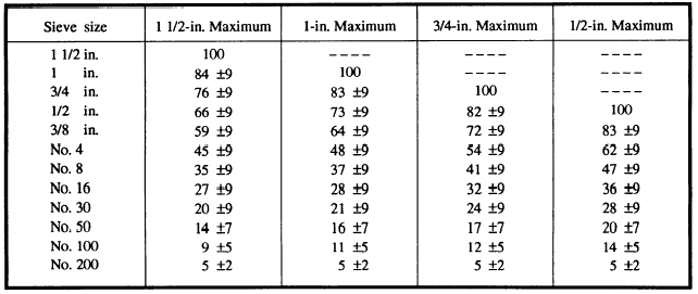 Table 18-5.Recommended Gradations for Bituminous-Stabilized Subbase Materials