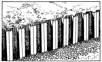 STABLE-SHORELINE STRUCTURES These structures are constructed parallel with the shoreline to protect it from erosion or other wave damage.A seawall is a vertical or sloping wall that offers protection to a section of the shoreline against erosion and slippage caused by tide and wave action. A seawall is usually a self-sufficient type of structure, such as a gravity-type retaining wall. Seawalls are classified according to the types of construction. A seawall may be made of riprap or solid concrete. Several types of seawall structures are shown in figure 1-16.A bulkhead has the same general purpose as a seawall; namely, to establish and maintain a stable shoreline. However, while a seawall is self-contained, relatively thick, and is supported by its own weight, the bulkhead is a relatively thin wall. Bulkheads are classified according to types of construction, such as the following: