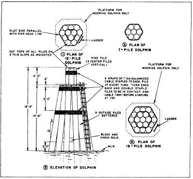 system also includes two 14-pile dolphins, located 15 feet beyond the end of the