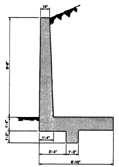 Q4.As a surveyor, you have been tasked to stake out a sanitary sewer line for a project. In which division of the specifications should you find the gradient requirements for the sewer piping?Q5.Referring to the above question, in what part of the specification division should you find the gradient requirements?Q6.What estimating publication has been prepared specifically for Seabee construction?Q7.You have been tasked to prepare the concrete estimate for a 150-foot long retaining wall that has atypical cross section as shown in figure 5-6. Including a lo-percent waste factor, how many cubic meters of concrete will be required?Q8.When detaining how many sheets of plywood will be required as forming material for the retaining wall shown in figure 5-6, what waste factor (according to NAVFACP-405) should you use if the plywood is to be used twice? Q9.What is the basic planning tool that you should use when assisting in the planning of an advanced base?Q1O.Where in the Facilities Planning Guide, NAVFAC P-437, will you find recommended crew sizes?