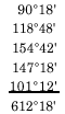 The interior angles in a six-sided closed traverse should add up to 72000'. The difference between 72000' and 61218' is 10742'. This large difference suggests that you dropped an angle measuring about