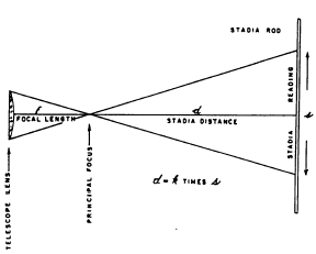 Figure 8-3.Light rays converge at principal focus of a lens. equal to the stadia constant (k) times the stadia reading (s). |