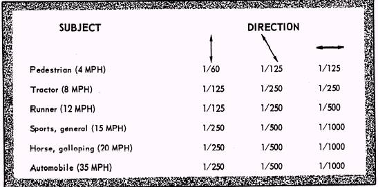 Figure 11-21. - Slowest shutter speeds necessary to stop action.