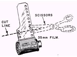 Figure 11-26. - Cutting leader (loading tab) from 35mm film.