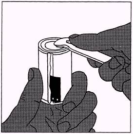 Figure 11-27. - Opening a 35mm film cassette with a can opener. of the reel. The film emulsion must face in, or toward, the center of the reel. The tension on the film should be firm enough to prevent the film from skipping the spiral grooves, but not too firm to cause it to overlap or fall into the same groove twice. 4. Turn the reel while applying a gentle pressure. This pressure will produce a slight curl in the film and allow it to pass into the edges of the reel. Make sure you keep your thumb and forefinger on the film edges! As you continue to turn the reel, the film will straighten out and fit into the grooved spaces in the reel. Figure 11-28 shows the proper way to load 35mm film on a wire reel.
