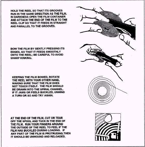 Figure 11-28. - Loading 35mm film on a wire reel. |