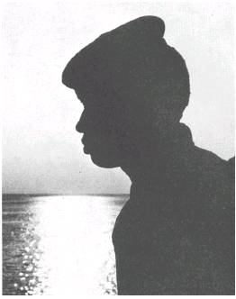 Figure 12-13. - Silhouetted subject. horizon, a person's limbs, the side of a ship, a fence or a winding road. These lines - vertical, horizontal, diagonal or curved - lend their own element of emphasis to a composition. Vertical lines formed by elements in composition suggest strength and dignity (a sentry at attention), while horizontal lines suggest tranquility and rest (a ship on the horizon at sunset). The diagonal line suggests action (climbing aircraft) and a variety of lines indicates activity. A feeling of grace and beauty is conveyed to the viewer by the use of curvaceous lines, such as those used in glamour and fashion photography. BALANCE A good composition should have balance. In other words, your viewer should not get the uneasy feeling that the elements may come tumbling out of your composition. A balanced composition gives a feeling of harmony to the whole setting. Elements of balance are placed in opposing sections of a photograph in such a manner that each section appears to have an equal amount of weight
