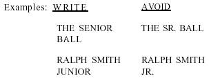Abbreviations and Acronyms Abbreviations are used in broadcast copy, but only when they are intended to be read as abbreviations. The use of well-known abbreviations is permissible, such as Y-M-C-A, F-B-I, U-S, U-N, A-M, P-M or E-S-T (note hyphens). You may also use MR., MRS., MS. and DR. "ST." may be used instead of "SAINT," in cases such as ST. LOUIS or ST. PAUL. Do not abbreviate the names of military installations. For example, use FORT (not FT.) KNOX and NAVAL AIR STATION (not NAS). Never abbreviate names of states, cities, countries, political parties (except G-O-P), days of the week months, titles of officials and address identification, such as street, avenue, drive or boulevard. In addition, avoid starting a sentence with an abbreviation. A good rule for you to remember when using abbreviations in broadcast copy is - when in doubt write it out. Note the following examples:
