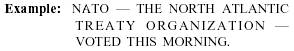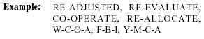The Hyphen Use the hyphen to help announcers in phrasing difficult words and to instruct them on how to pronounce individual elements distinctly. Note the following examples: