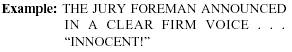 Parentheses Normally, in broadcast copy, the material inside parentheses is not meant to be read aloud. Parenthetical material in broadcast copy includes notes to the announcer, such as pronunciation guides, reading rates, and so forth. Quotation marks often will appear in broadcast copy as a cue to the announcer or newscaster to stress a particular word or phrase, setting it apart from the rest of the sentence. Do not confuse the use of quotation marks as a cuing device with their use for indicating a direct quote. Quotation marks also can be used as an aid to announcers to set off nicknames, titles of books and plays, and so forth. Note the following example: