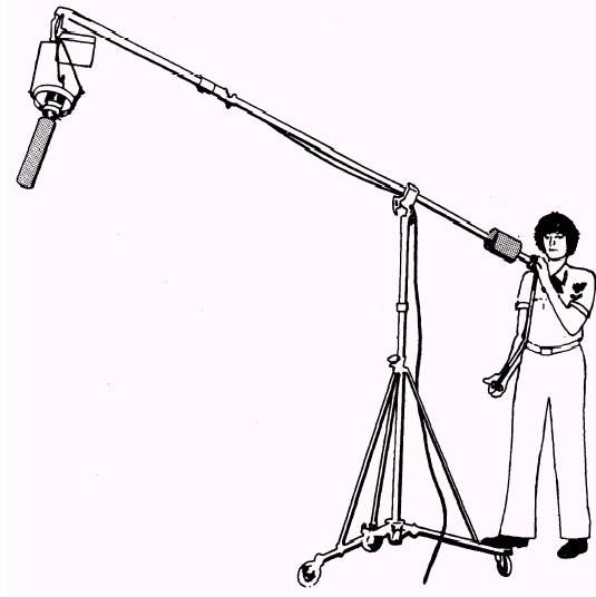Figure 14-20. - Giraffe boom. pickup and greatly reduced side pickup are desirable. The bidirectional microphone is ideal for such applications as "across the table" interviews or dialogue recording under studio conditions. The polar patterns of all three microphones are shown in figure 14-19. |
