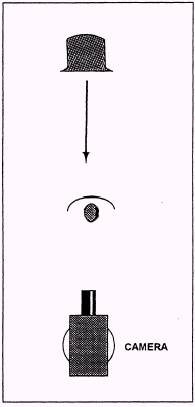 Figure 14-29. - Backlight. Proper Lighting Intensity Lighting in television is as important as lighting in basic photography. It has both artistic and technical aspects. Well-planned and executed lighting produces a clear picture with outstanding contrast and depth. Most television cameras are capable of operating in very low-light levels. However, shooting in dim light may give you video noise and be of generally poor quality. Proper Lighting Placement When you set up lighting for a live television production, remember that these productions are continuous; therefore, you must make sure that the lighting you use will be effective from every angle the camera sees in the program. You do not have the luxury of stopping to readjust lighting for each shot. You must make sure that the lighting fixtures and cables do not interfere with the free movement of the cameras. As always, you must plan ahead to avoid embarrassing pitfalls, and then let your television monitor be your guide when making additions to, and subtractions from, your lighting setup. Skin Tones Because skin tones are the only "true" means by which a viewer can adjust the color balance of his television set, it is obvious that skin tones must be reproduced accurately and naturally. Proper lighting is the chief way of accomplishing this task. One way of reproducing natural skin tones is to light the set evenly. If a talent moves from a light scene to a dark scene, the talent's face should be kept as evenly lighted as possible. The difference between the dark scene and the light scene should be accomplished through backlighting and not the lighting on the talent. Since extreme shadows take on their own color, you should avoid casting them on the face of the talent. However, do not eliminate facial shadows altogether. Lighten them with fill light instead. A certain amount of shadows are necessary to give character and dimension to the face. Do not permit color reflections from clothing or scenery to fall on the talent's face. Likewise, avoid the use of colored lights to light the talent (except for special effects). Save the colored lights for lighting the background. |