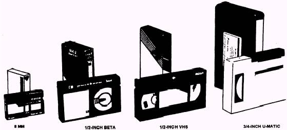 Figure 14-45. - Videotape formats. Keep in mind that secondary movements must have a valid purpose. Do not make them arbitrarily. Tertiary Movement Tertiary movement results from a sequence of shots from two or more cameras. When two or more cameras are used the director can select from a variety of pictures to determine what picture will be telecast and at what time. When more than one camera is used, the director can easily emphasize, de-emphasize or show action and reaction in rapid or slow succession. |