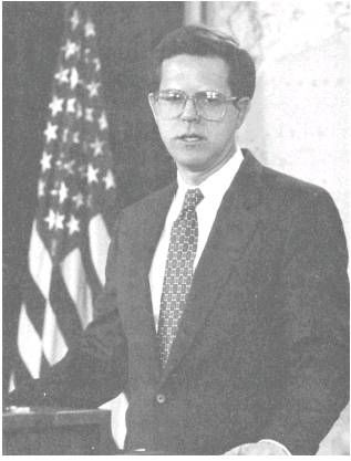 Figure 3-2 . - A speech story features something not officially disclosed before. military personnel. This fact goes into the lead as depicted in the following text: "All active-duty military personnel will get a four percent pay increase January 1," said Defense Secretary Justin N. Case in a speech before the National Press Club last night. Merely that a speaker appeared before an audience has very little story merit. The speaker must say something newsworthy - something that has not been officially disclosed before. This normally happens when a speaker appears before the media in a news conference (fig. 3-2). The subject title of the speech is rarely important enough to become part of the lead. Speech titles are usually catch phrases that reveal very little about what is the most important part of the story. For example, when the President of the United States speaks, the lead features what he said in the following manner: "The president, in a major speech tonight, called for another tax cut. ..." |