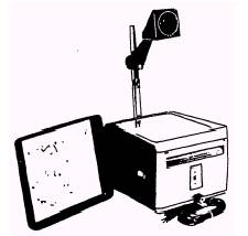 Figure 16-11. - Opaque projector. cloths because they may scratch these surfaces. Rinse and dry all optical surfaces after cleaning them. Permanent damage can result if they are not rinsed and dried thoroughly. Any accumulated surface dirt on the mirrors should be removed with a camel hairbrush only. Opaque Projector Simple care and occasional cleaning keeps the opaque projector (fig. 16-11) in good working order. Clean its optical elements (projection lens, parabolic reflector, secondary mirrors, front surface mirrors and projection lamp) by wiping them with a lint-free rag, damp chamois or lens tissue. The front surface mirrors are the most important optical elements of the opaque projector. When you compare an ordinary mirror to a front surface mirror, you will see that the reflective coating of the front surface mirror is fully exposed, hence its name. The coating of a regular mirror is located at the rear of the glass. Consequently, the front surface mirrors of an opaque projector are extremely delicate. Do not get your fingerprints or other marks on it. If the mirrors are not soiled, then any dust accumulation can be removed with a soft camel hair brush. If they are badly soiled, wipe them very gently with a lint-free cloth or lens tissue. (Use extreme caution when you use the cloth or tissue - they can scratch the surface of the mirror.) Carousel Slide Projector The cleaning procedures for the Carousel slide projector (fig. 16-12) are essentially similar to those used for the opaque projector. The Carousel uses a standard mirror, so you should remove surface dirt with a camel hairbrush. l l |