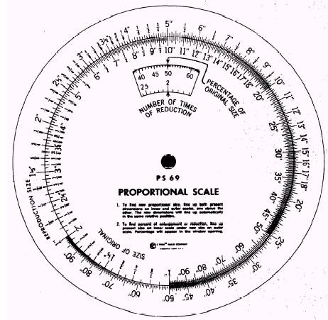 Figure 8-14. - Proportional scale. 4. Draw a broken vertical line at a right angle from it to the diagonal line as before. Extend the diagonal line to meet the broken line. 5. Complete the rectangle and measure the space. This is the area your photograph will occupy when it is enlarged. The Proportional Scale Method Perhaps the most common way of scaling is the proportional scale method. The proportional scale (fig. 8-14) has a movable inner disk with a window mounted on an outer disk. Both disks have unit graduations from 1 to 100. Any unit of measurement can be used with the proportional scale. To use the scale, you need to know three of the four measurements involved in scaling. You must know the cropped width, cropped depth and reproduction width (or the reproduction depth if you are establishing a reproduction width. Use your proportional scale to determine the reproduction depth in the following example: PHOTOGRAPH DIMENSIONS: The cropped width is 18 picas and the cropped depth is 4 inches. It will be used in a one-column, 13.5 -pica-wide space. STEP 1: Align the cropped width (18 picas) on the inner disk, with the reproduction width (13.5 picas) on the outer disk. STEP 2: Find the cropped depth (4 inches) on the inner disk and read the reproduction depth opposite it on the outer disk. The reproduction depth is 3 inches. The window on the inner disk displays the "percentage of original size." In the preceding example, the photograph will be reduced to 75 percent of the cropped size. Percentages less than 100 indicate a reduced size; those higher than 100 mean the photograph will be enlarged. If you work for a CE or funded newspaper, your printing contract may stipulate maximum reduction and enlargement percentages and sizes. Marking Photographs Photographs or other artwork must be marked appropriately so the publisher will know exactly what you want. Instructions are usually printed on the reverse of a photograph with a china marker. For instance, you mark a photograph "1-A, reduce to 24 picas by 5 inches" (width is always given first in art sizes). The "1-A" is a way of letting the publisher know you want the photograph to appear on page 1, fitted into a space designated "A" on the layout. It also tells the publisher that you have scaled the photograph, and when reproduced, it will occupy a space 24 picas wide and 5 inches deep; or you might simply use slugs to match a story with a related head, art and cutline. Usually, an editor devises the "key" system to be used. |