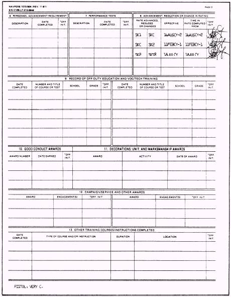 Figure 8-12.-Navy Occupational/Training and Awards History, NAVPERS 1070/604.