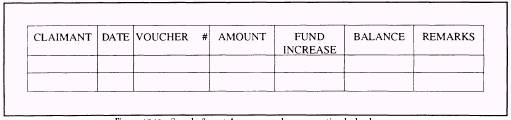 The two reports discussed previously are the Accounts recorded in the accounting system that are incorrect-both obligations and expenditures Canceled vouchers or vouchers improperly charged against a job order that are recorded in the accounting system-both obligations and expenditures Report all errors to the appropriate person at your accounting activity. NOTE: If you have access to an Integrated Disbursing and Accounting System terminal, you will be able to directly enter the obligations yourself. This should make reconciliation easier especially if you enter them in a timely manner. You may also receive a weekly transaction listing. Although this enables a weekly reconcilitition, a monthly reconciliation is adequate-except at the end of the fiscal year when it is critical that fund status be closely monitored. The key to effective accounting is a good UNLIQUIDATED OBLIGATIONS You are not done managing Navy claims funds until MEMORANDUM ACCOUNTING LOGBOOK A sample format for the memorandum accounting logbook is shown in figure 12-10.