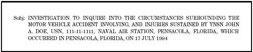 Figure 13-1.-Sample subject line for JAGMAN investigation.