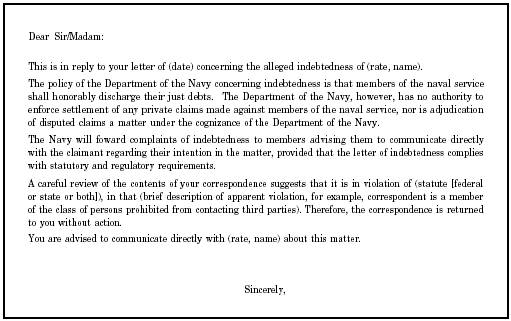 Figure 14-2.-Sample letter of complaint referred to service member debtor.