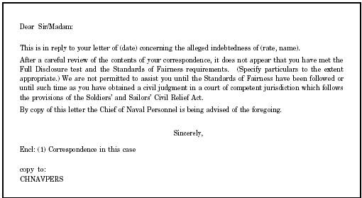 ADMINISTRATIVE OR DISCIPLINARY ACTION Actions discussed here are reserved for aggravated cases of service members who show no inclination to settle qualified debts referred to them through their commands. Such cases involve members who continually overextend themselves despite prior difficulties from, and warnings regarding, living beyond their means. Repeated complaints from the same creditor or multiple complaints from different sources are the usual indications of these problems. Administrative Separations Service members may be separated for misconduct due to a pattern of misconduct when they exhibit an established pattern of dishonorable failure to pay just debts. Processing for misconduct could result in an other than honorable separation with attendant loss of service benefits. In each case, the member must have received prior counseling from an appropriate financial counselor or, if necessary, full family counseling if it appears that domestic relations or alcohol abuse might be, in part, responsible for the indebtedness. He or she must also be given a reasonable time to show progress in his or her efforts to become solvent. Following counseling, a warning entry is made on page 13 of the member's service record. Disciplinary Action Article 134, Uniform Code of Military Justice (UCMJ), includes the offense of dishonorable failure to pay a just debt that carries a maximum punishment of 6 months' confinement, forfeiture of all pay and