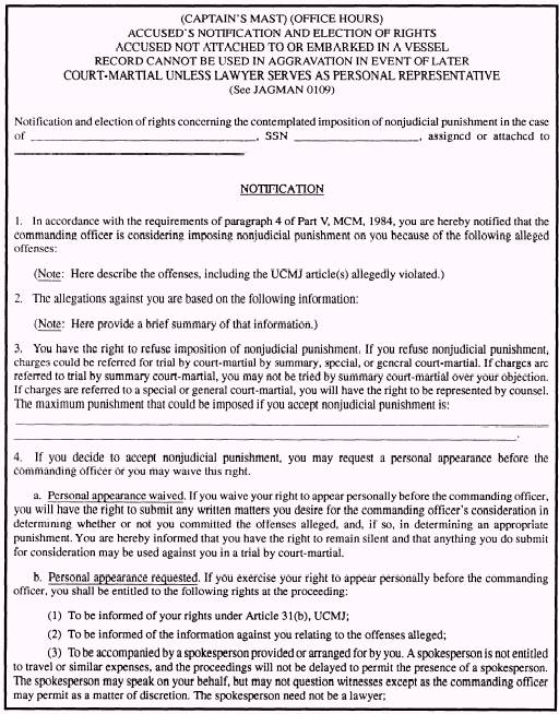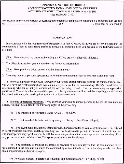 Figure 5-4.-Accused's notification and election of rights. Accused attached to or embarked in a vessel.